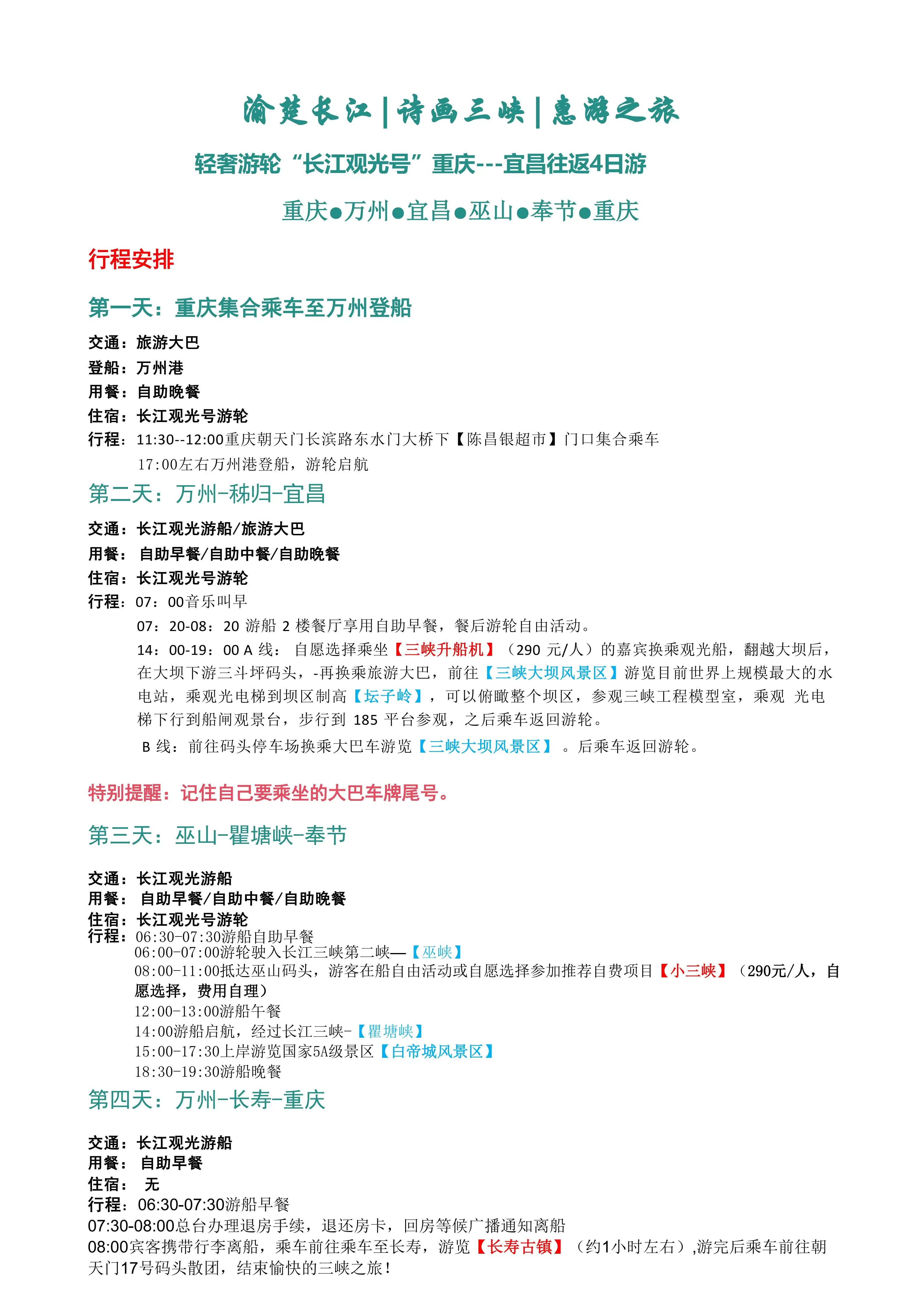 春节行程 重庆往返四日游