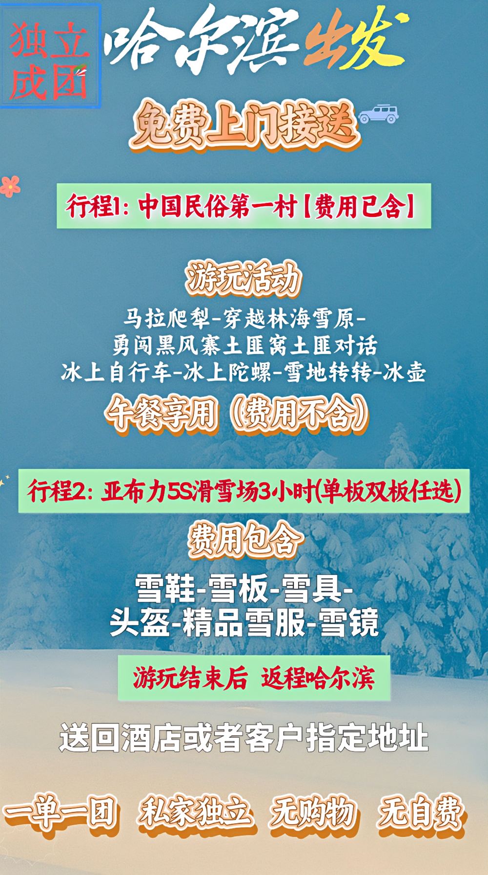 【私家团】亚布力滑雪一日游·马拉爬犁·黑风寨·冰上活动【上门接送·一单一团·独立出行·无购物·无自费 不起早 深度纯玩拒绝走马观花 拒绝隐藏消费】
