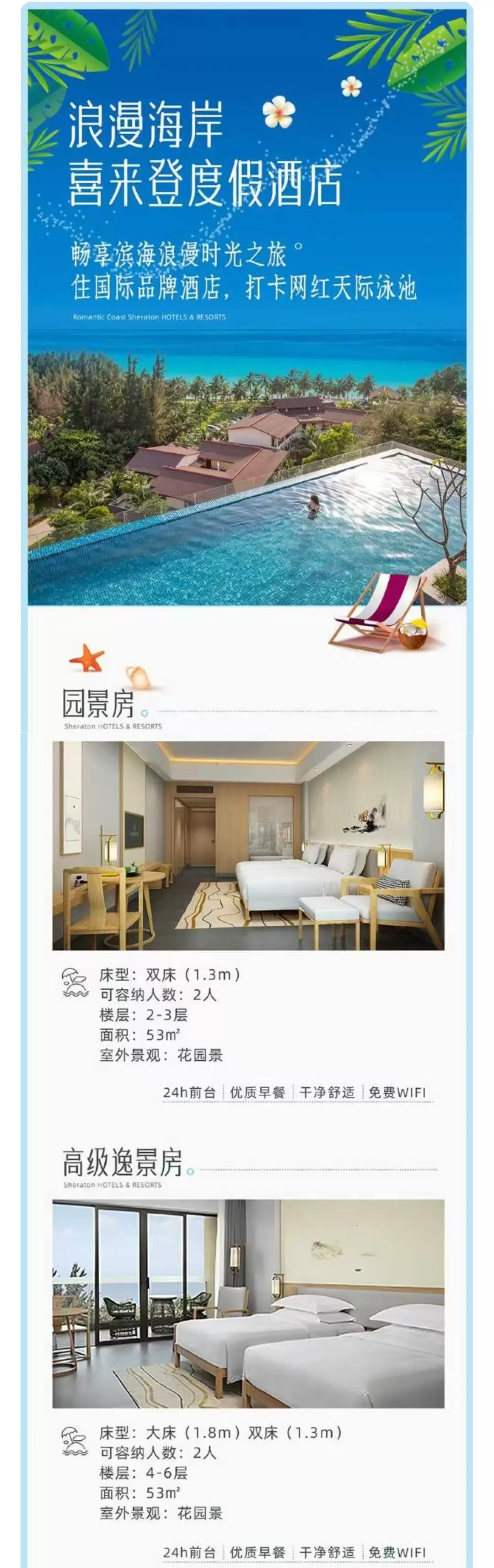 【早午餐+门票+水乐园】浪漫海岸喜来登度假酒店住1晚+2人爱丽丝餐厅早餐午餐+2人浪漫海岸景区门票+2人水乐园