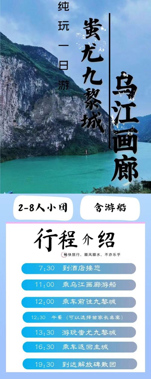重庆彭水蚩尤九黎城+正宗乌江画廊游船一日游/2-8人拼团纯玩【亮点1:乘坐游船看乌江画廊,精品小团纯玩无购物,上门接。】