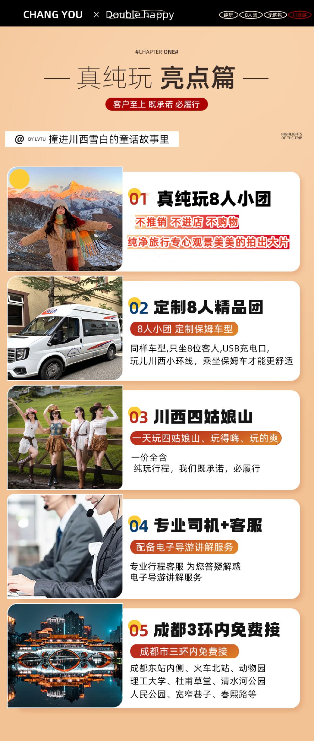 四姑娘山一日游·真纯玩VIP保姆车8人小团+蓝眼泪南桥夜景【【高奢品质:纯玩小团引领者】真纯玩高品质小团&无套路+告别难吃团餐&为每位远道而来的朋友负责到底!】