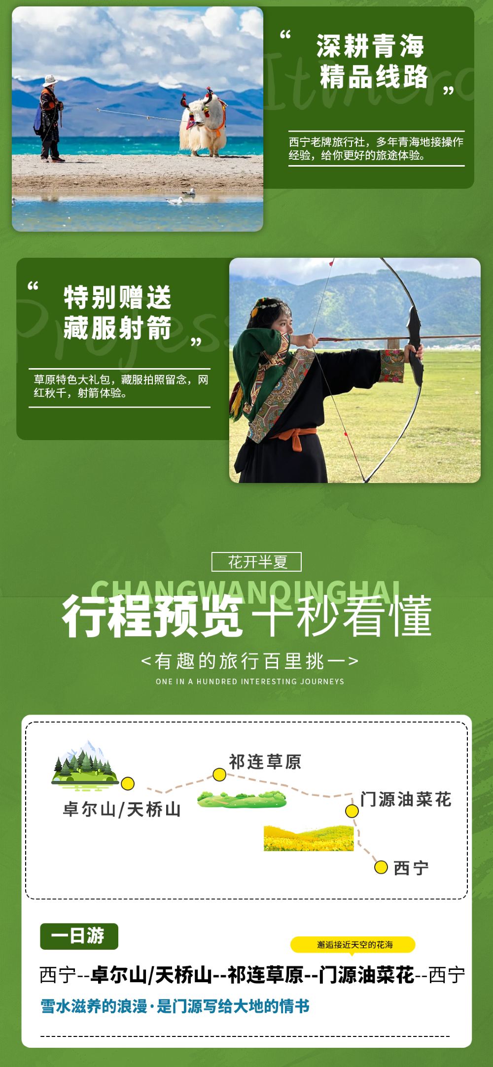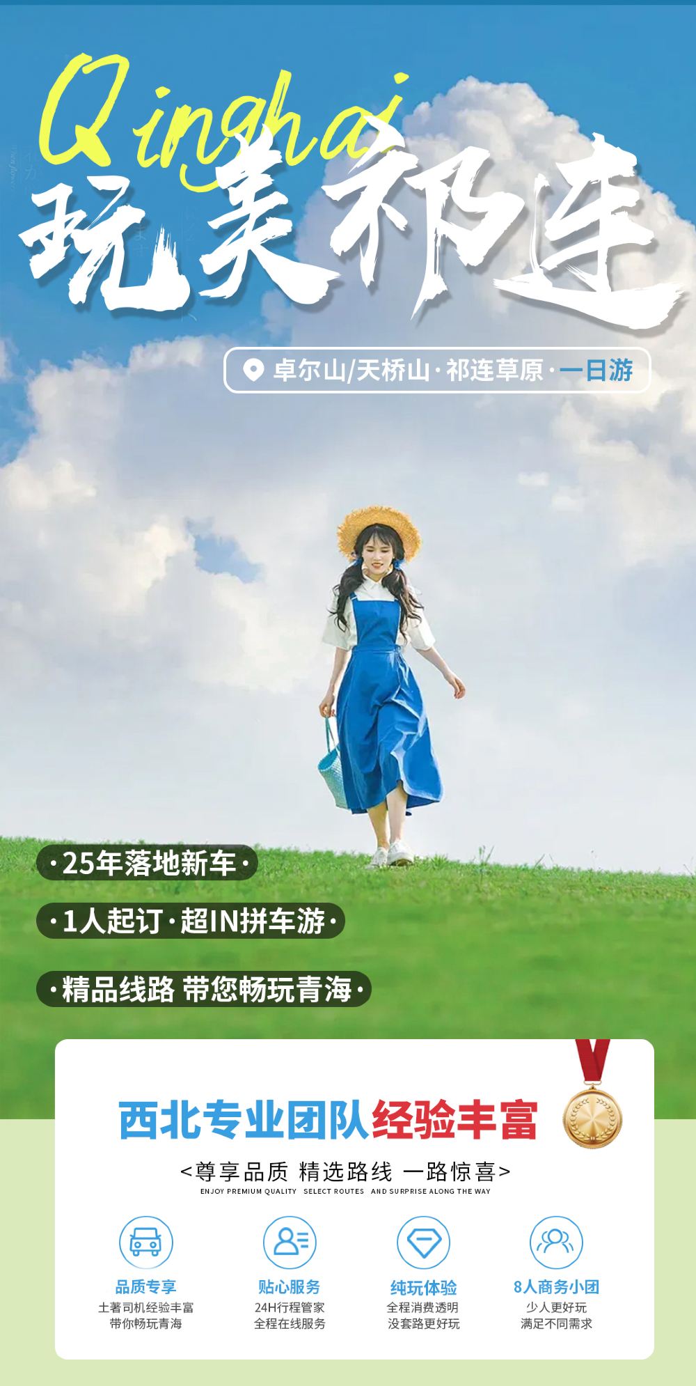 青海西宁+岗什卡雪峰+祁连山草原+卓尔山或天桥山一日游【8人团25年落地新车】