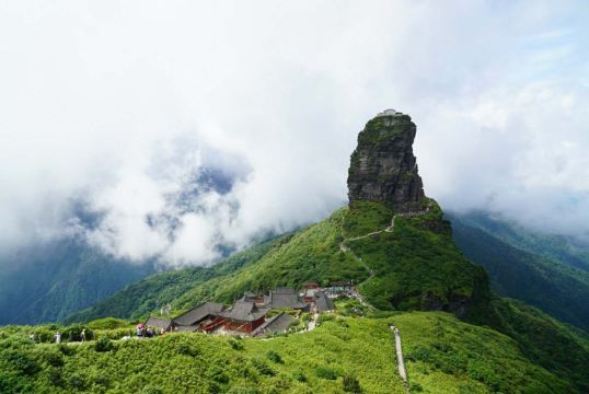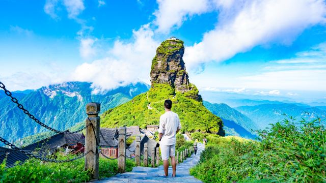 ▲ 天空之城:标志性的红云金顶,孤峰入云,上有两座百年古庙,景色壮观如仙境。