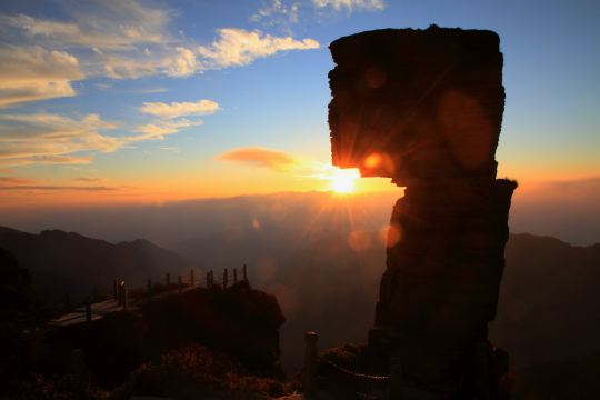 ▲ 蘑菇石:山巅的奇石景观,形似蘑菇,是梵净山的象征。