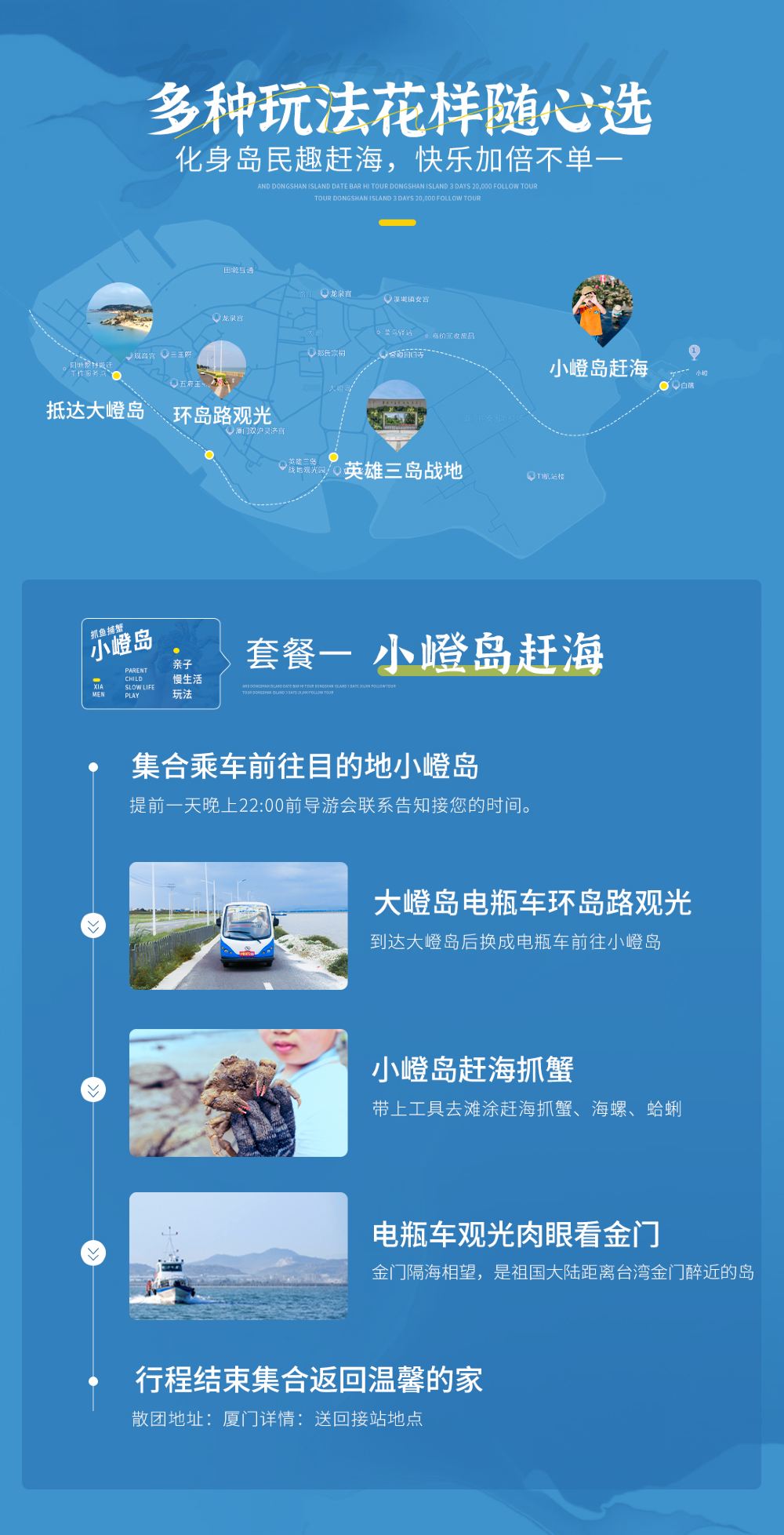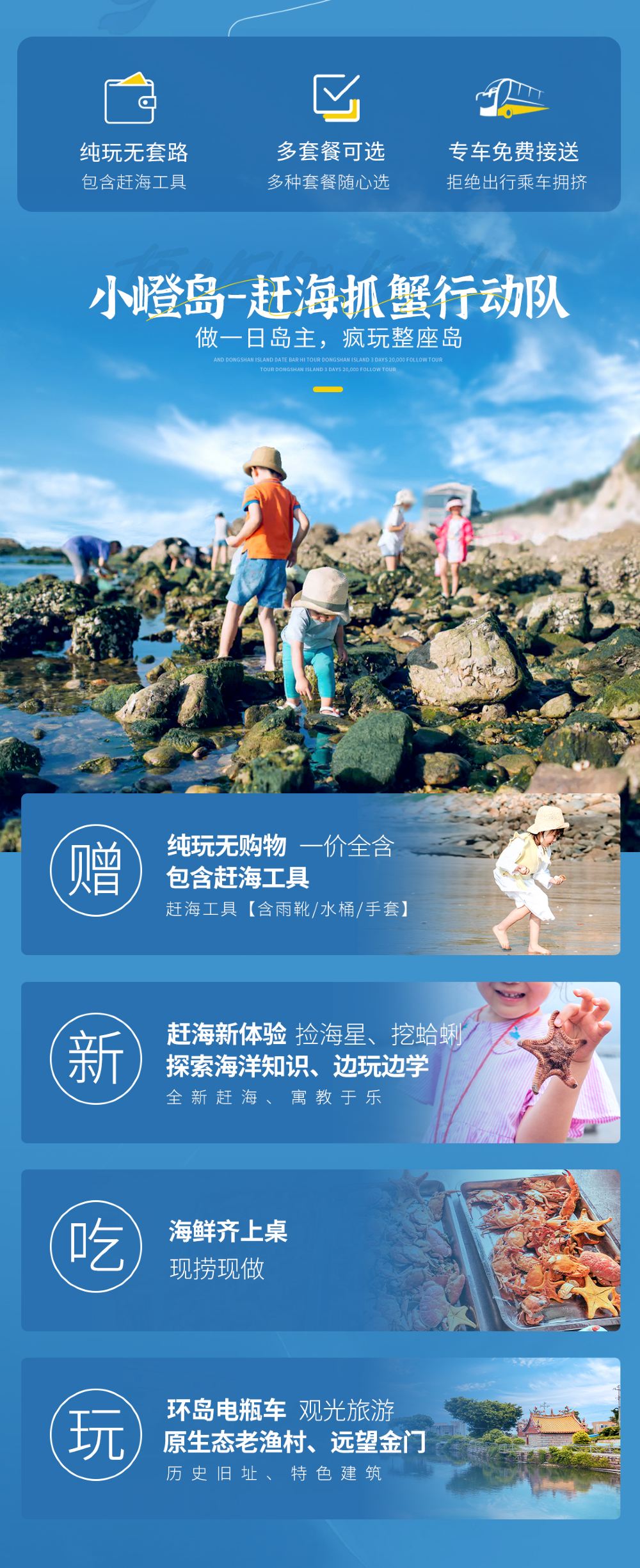 厦门小嶝岛一日游赶海抓蟹/帆船+景交车环岛观光+讲解+海鲜餐【【体验式旅行】岛上渔民带玩,体验挖海蛎、捕海蟹、捉鱼虾的渔家生活劳作】