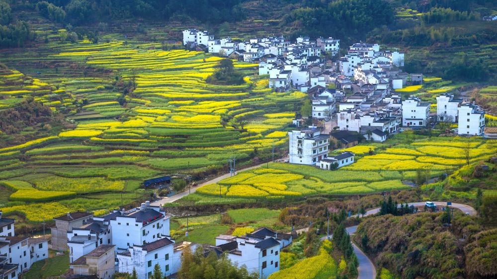 ▲ 座落于婺源县东北部,作为中国四大花海之一,有10万亩梯田油菜花,每年3-4月,金黄花海与徽派民居相互映衬,构成壮美画卷,是摄影爱好者的天堂。