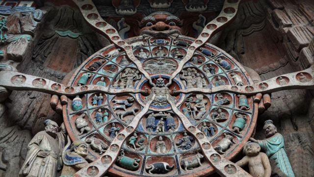 10:30-14:00 大足石刻观光游览(3.5小时自由探索,参观宝顶山石窟、千手观音、轮回图等核心景点;了解古代石窟艺术与文化)