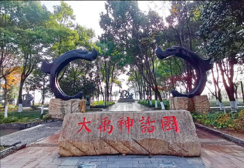 ▲ 【大禹神话园】坐落在雄伟的长江大桥汉阳桥头堡脚下,园内花木扶疏,翠竹掩映,山水辉映,风光宜人。防汛堤的闸口两边,两个巨大的石刻人面像圆睁两眼,凝视着每一个游人,坚毅的下巴、下垂的大耳环、古拙的面孔,散发出一种庄严神秘的气息。大禹是一种文化,大禹是一种精神。