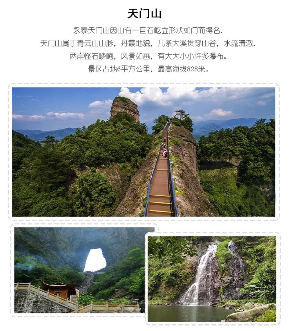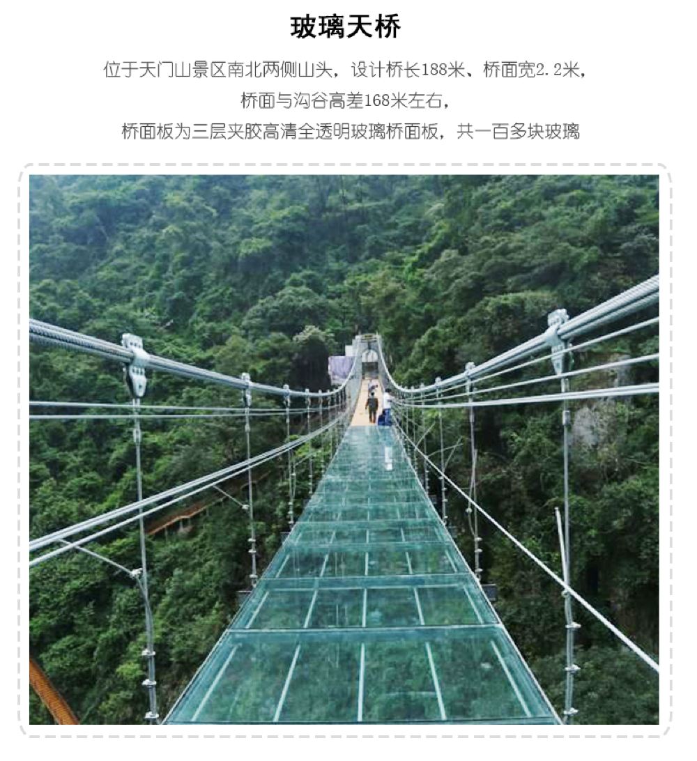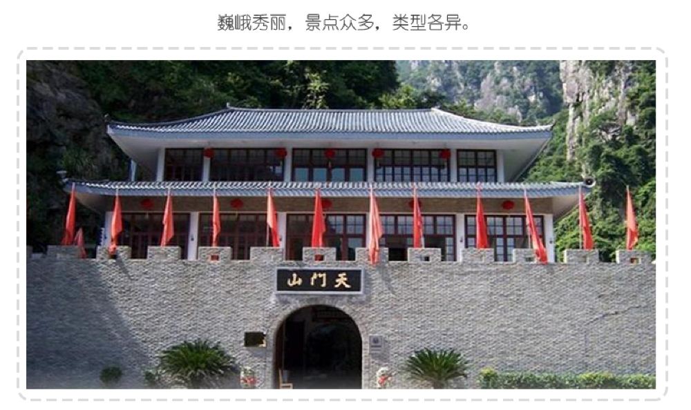 游玩【天门山】景区,爬山,观景,看瀑布。天门山景区有三曲桥,七仙桥,仙女浴池,天门洞、万石瀑布、千米栈道,葫芦潭,天生桥、地下河。前往地下河,长70多米,因火山喷发,两山拥挤成天桥,又因河流千年奔腾不息,冲出地下河来,地下河岩壁上万年石乳形成的天然“观音”、“弥勒”佛显像,栩栩如生,神秘莫测。