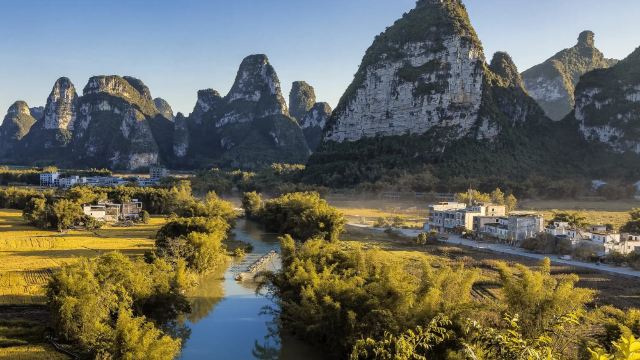 ▲ 明仕田园位于崇左市大新县西侧,距离有名的德天跨国瀑布景区约一个小时车程,游客通常会将两个景区一并游览。明仕田园是独特的喀斯特地貌,山势俊秀,周围又有流水环绕,景色极为漂亮。
