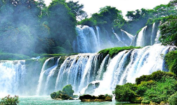 ▲ 德天跨国瀑布景区位于中越边境广西壮族自治区崇左市,横跨中国和越南两个国家,宽度达200多米,是亚洲首屈一指的大瀑布,为世界第二跨国瀑布,也是影视剧《花千骨》的取景地之一。