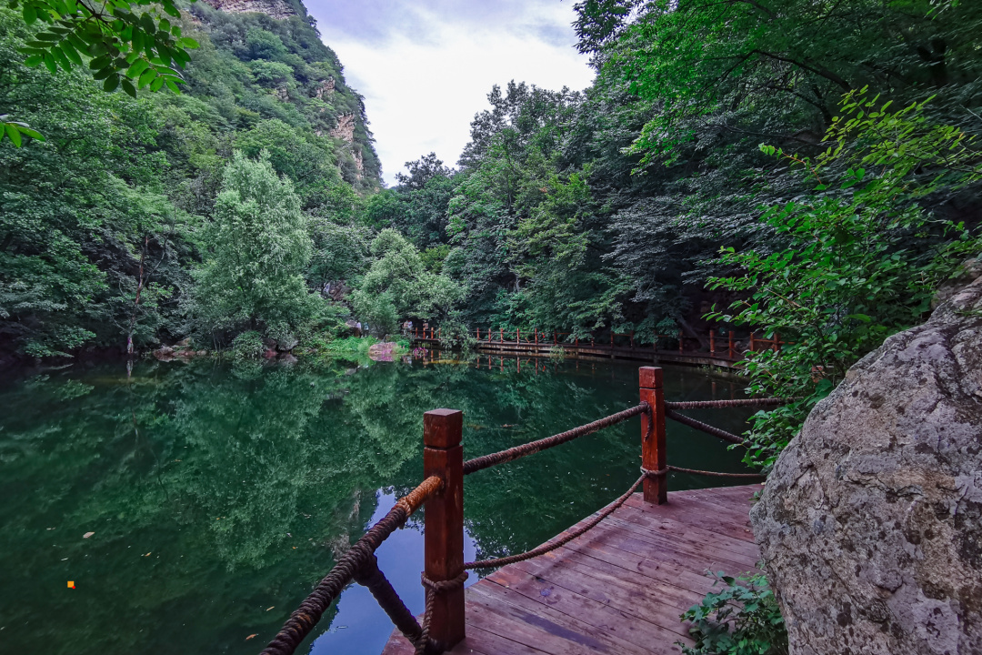 这里峰林峡谷雄险,茫茫林海秀幽,潭瀑溪水长流,藤萝攀援缠绕,被专家学者称为“天津的神农架”、“北方的热带雨林”。