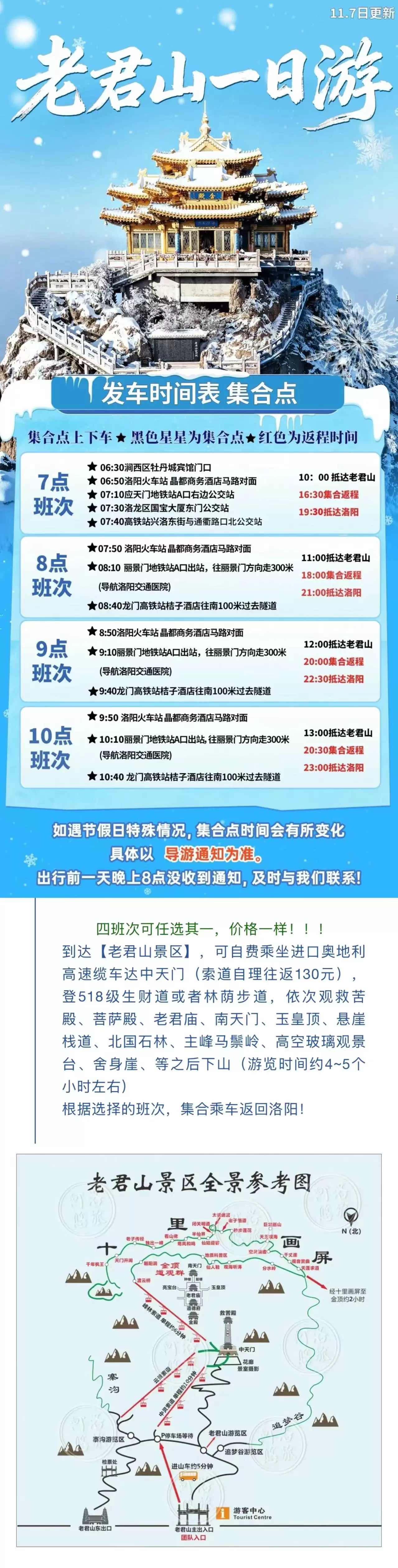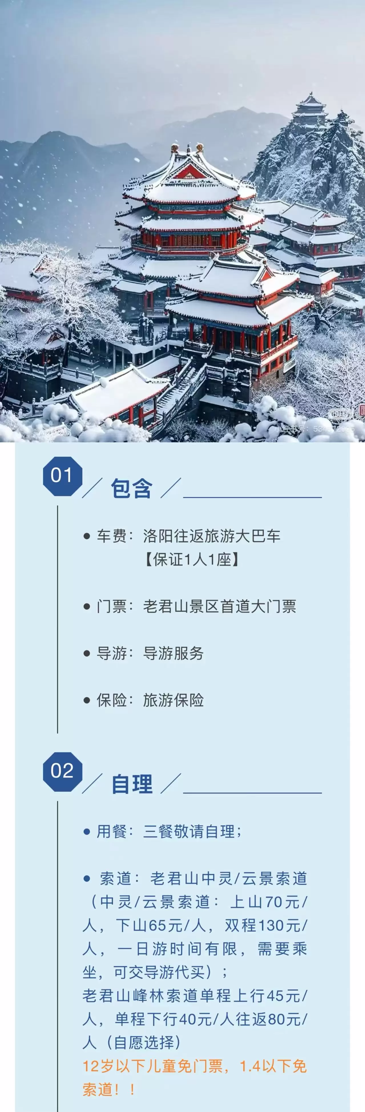 洛阳老君山景区一日游【赏雪景 金顶亮灯 多时段任选 高速直达索道口】