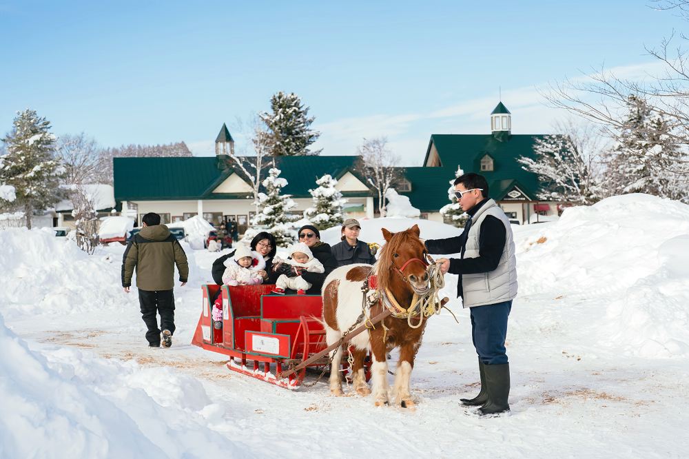 ▲ 【美瑛千代田互动牧场】与活泼的小马驹和温顺的羊驼近距离互动,体验短腿小马驹拉车的乐趣。或品尝鲜嫩美味的美瑛和牛料理,每一口都融入北海道的纯净馈赠——玩得尽兴,吃得满足,一切尽在美瑛千代田牧场!