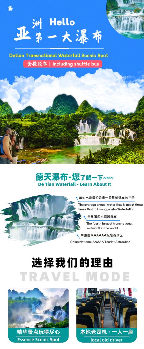1、自2018年1月1日起德天景区必须乘坐接驳观光车,本套餐成人赠送价值30元/人德天景区接驳观光车;