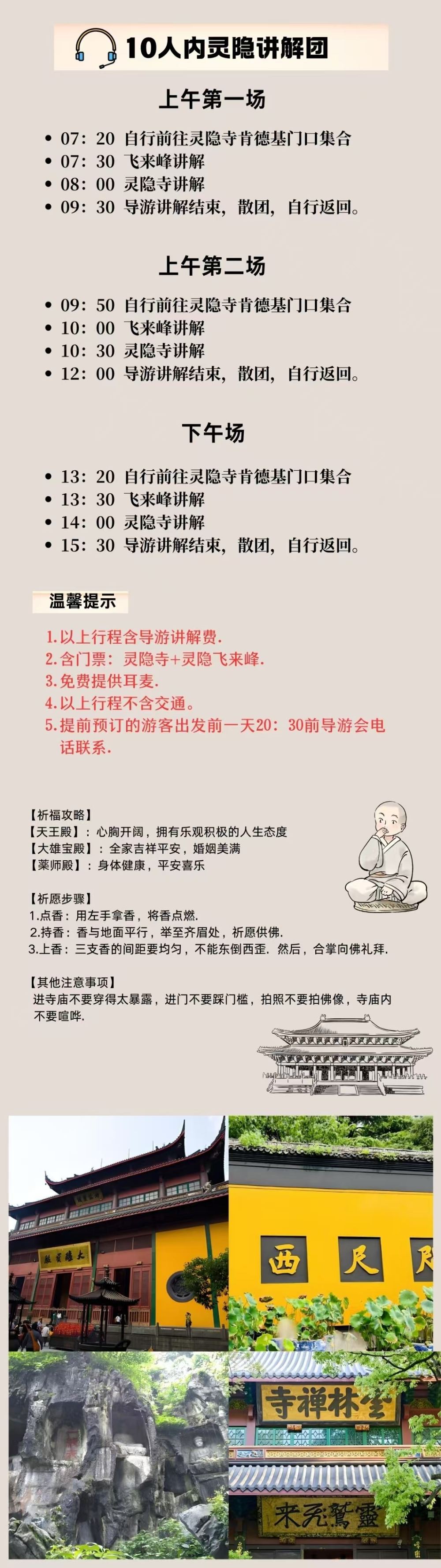 飞来峰下,云海翻腾,千年古刹藏于幽谷深处,宛如仙境。这里的一草一木,都仿佛被岁月浸润,散发着淡淡的禅意。初入古刹,"咫尺西天"的匾额高悬门楣,令人顿生敬畏。这四个字,既是地理的指引,更是心灵的召唤。踏过门槛,仿佛便跨入了另一个世界。这里的空气似乎都变得轻盈起来,带着一丝若有若无的檀香,让人不自觉地放慢脚步,心也随之沉静。+寺中的古树参天,枝叶交错,遮天蔽日。阳光透过树叶的缝隙,在地上洒下斑驳的光影,如同佛光普照。耳边传来潺潺的流水声,那是冷泉亭下的溪流,千百年来从未停歇。站在这里,恍惚间仿佛能听见白居易、苏东坡等人在此赋诗论道的声音,他们的才华与智慧,似乎还在这山水之间回荡。