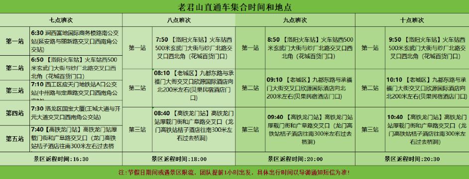2、老君山属于热门景区,节假日人流量大,会出现堵车、索道排队等不可抗力情况,返程时间导游会根据景区实际情况再定,有赶火车高铁飞机的客人,建议推迟或改签车票,以免造车不便