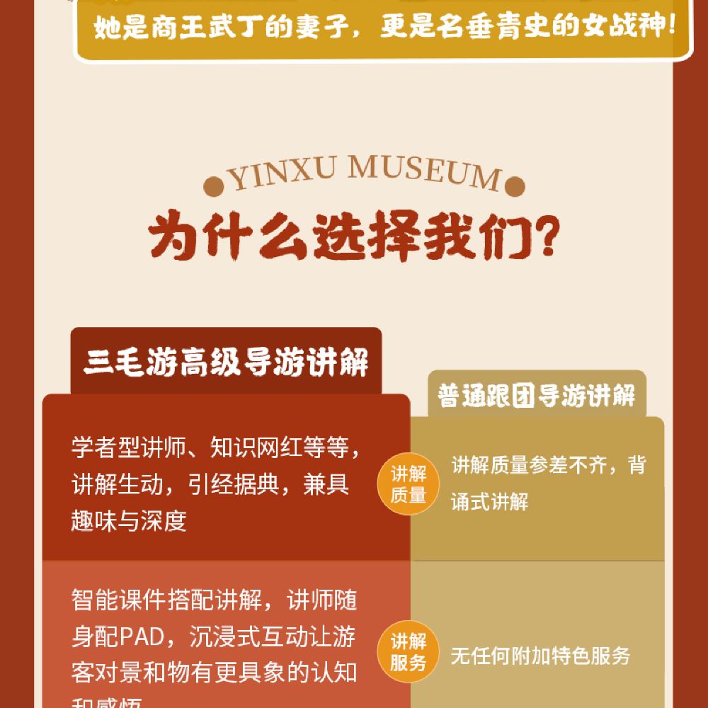 此产品为讲解服务、向导服务等综合费用产品,讲解服务不区分人群,6岁或以上大小同价,请按照实际出游人数购买对应份数【诚信报名】,若实际出行人数大于报名人数,三毛游有权拒绝其随团活动。