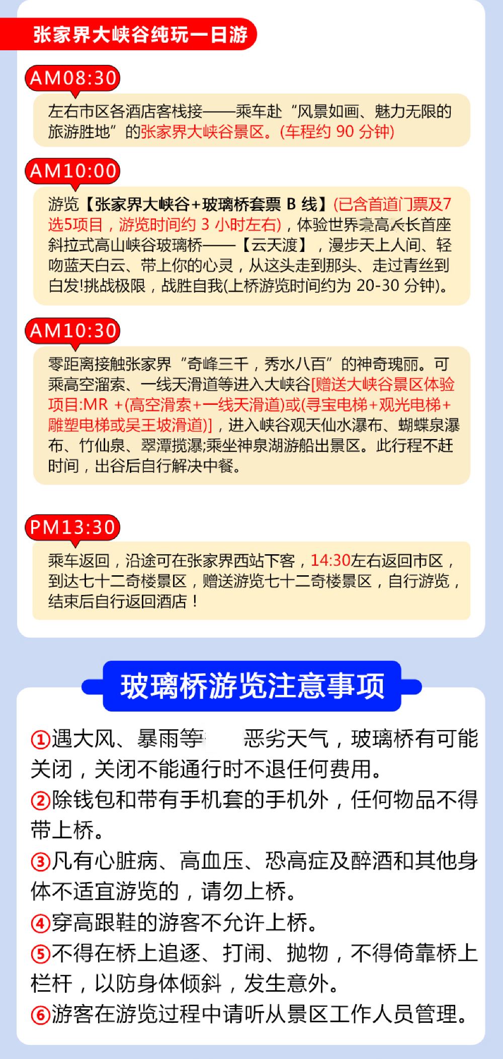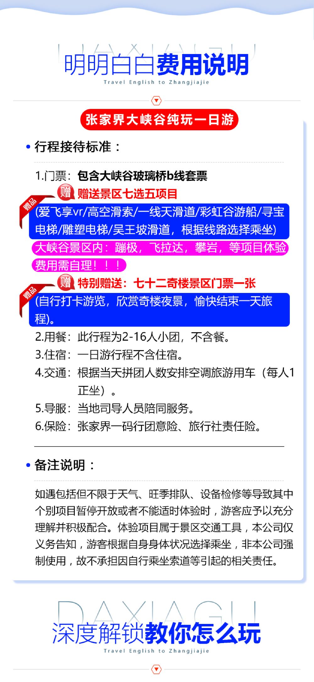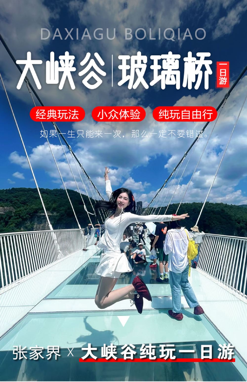 大峡谷玻璃桥一日游(含7选5滑索项目+景交 赠奇楼门票 )【【品质保障】一价全含无自费-全景畅玩—张家界大峡谷+玻璃桥+奇楼,一网打尽,自由纯玩】