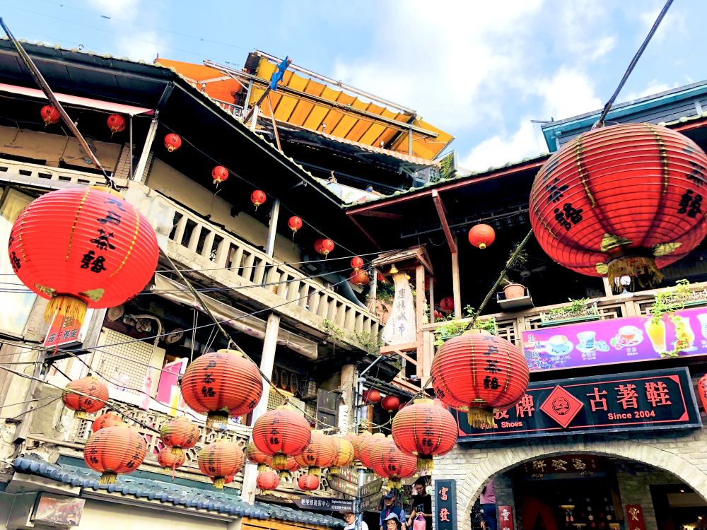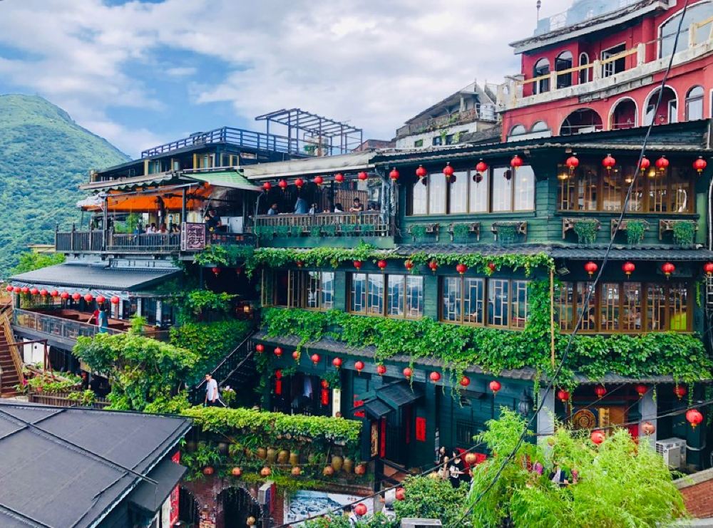 ▲ 九份老街的传统茶楼在青山绿水的环绕下,展现出浓厚的历史韵味。