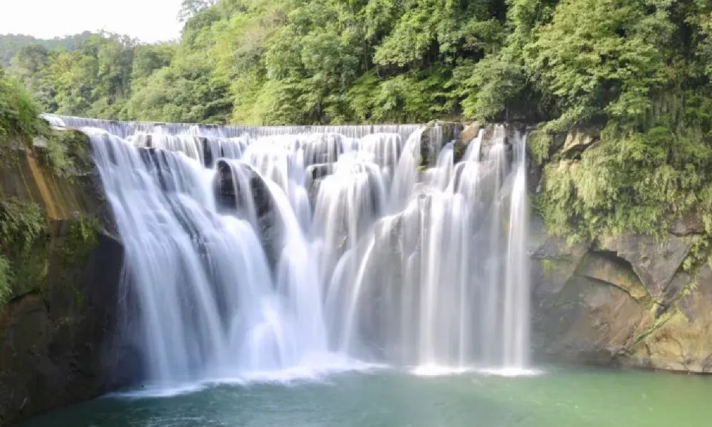 ▲ 十分瀑布的壮丽景观,水流如白练般倾泻而下,周围绿意盎然。