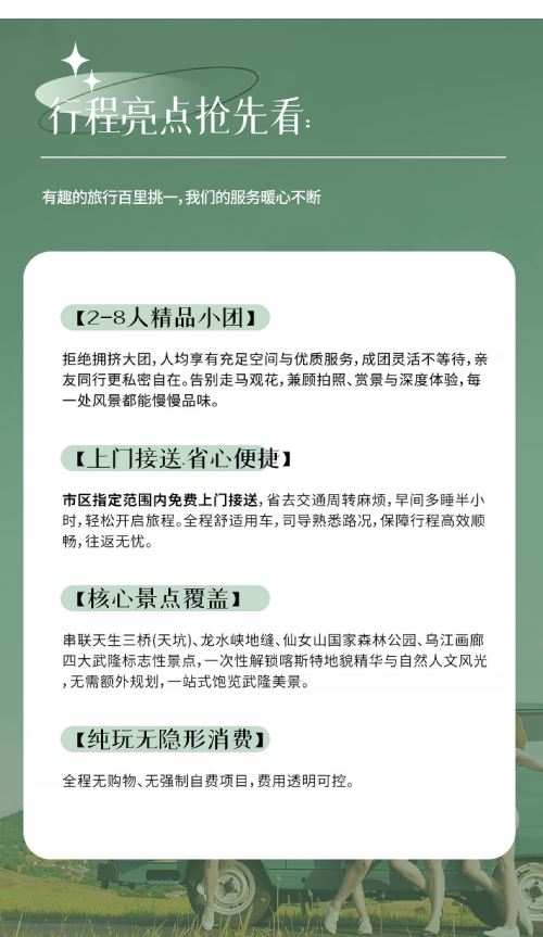 重庆一日游武隆天生三桥+龙水峡地缝+乌江【2-8人·纯玩团】【2-8 人精品小团:拒绝拥挤大团,人均享有充足空间与优质服务,成团灵活不等待,亲友同行更自在。】