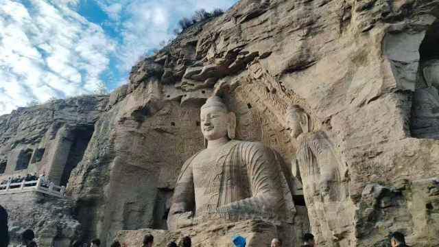 ▲ 这是梁思成林徽因追寻的大美千年皇家石窟,置身其中,肃穆齐整的菩萨、飞仙还有西域的精灵伴着金光飞过,仿佛吹着号角,好似一场大型音乐会,众多的佛教典故,还有北魏王朝的半部历史,已经被深深的凿刻于石壁之间. (费用包含景区门票和景区往返小交通)