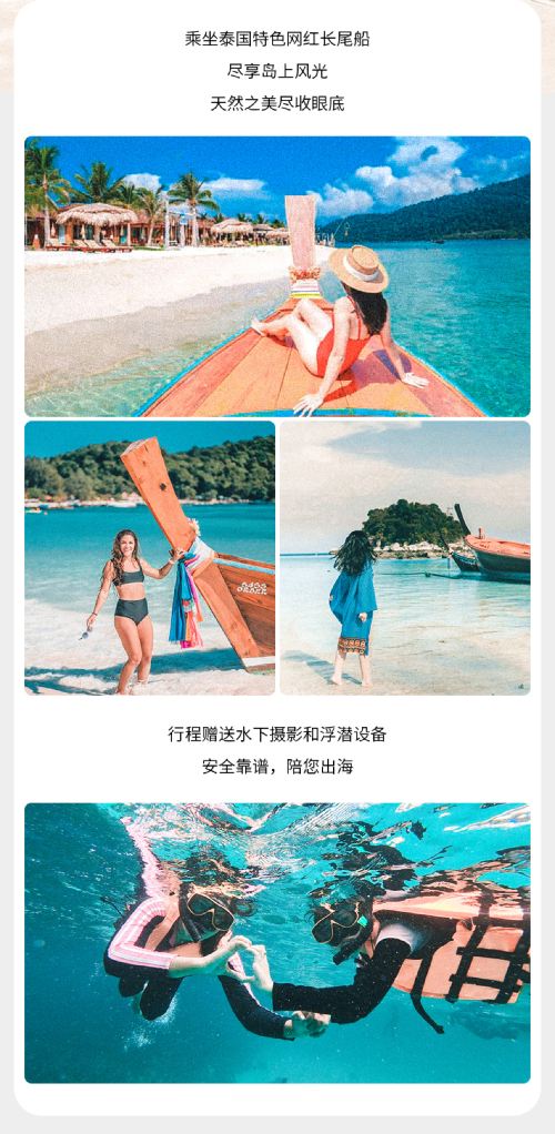 泰国丽贝岛一日游 小众跳岛浮潜游 长尾船/复古大船可包船【红珊瑚岛/加邦岛浮潜胜地,珊瑚缤纷,鱼群环绕】