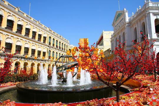 ▲ 「议事亭前地」因地处议事亭(澳门市政厅前身)而命名; 开埠至今,议事亭前地一直是澳门的市中心,许多节日庆祝活动都在此举行。