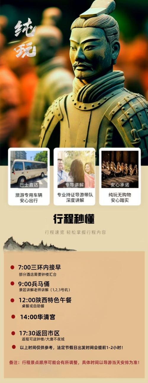 秦始皇帝陵博物院(兵马俑)+华清宫一日游【成人套餐包含[兵马俑门票+华清宫门票+车费+餐费+导服+无线耳麦]】