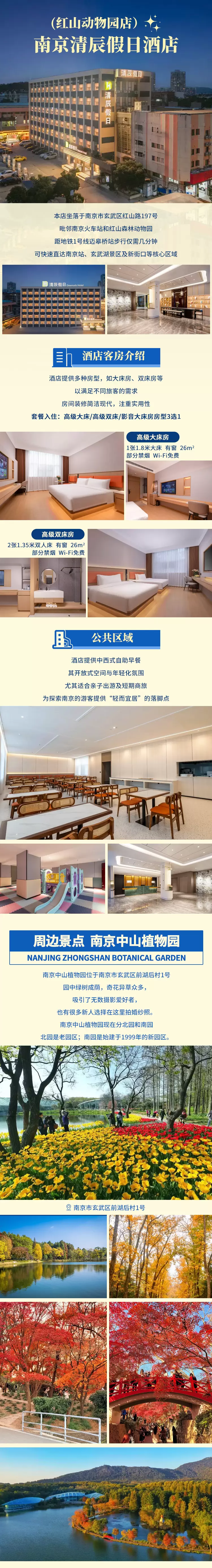 【酒店套餐南京清辰假日酒店 (红山动物园店)2天1晚+双人自助早餐+南京中山植物园南园+北园门票2张