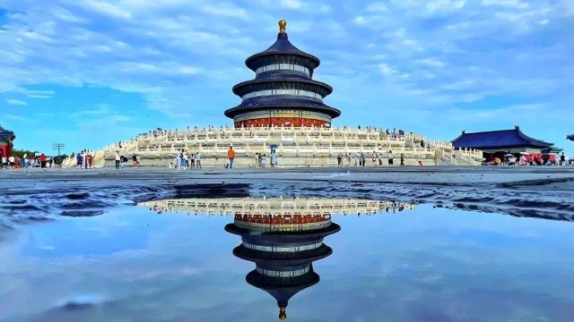 ▲ 【景点简介】 天坛是明清两代皇帝“祭天”“祈谷”的场所,位于正阳门外东侧。坛域北呈圆形,南为方形,寓意“天圆地方”。四周环筑坛墙两道,把全坛分为内坛、外坛两部分,总面积273公顷,主要建筑集中于内坛。