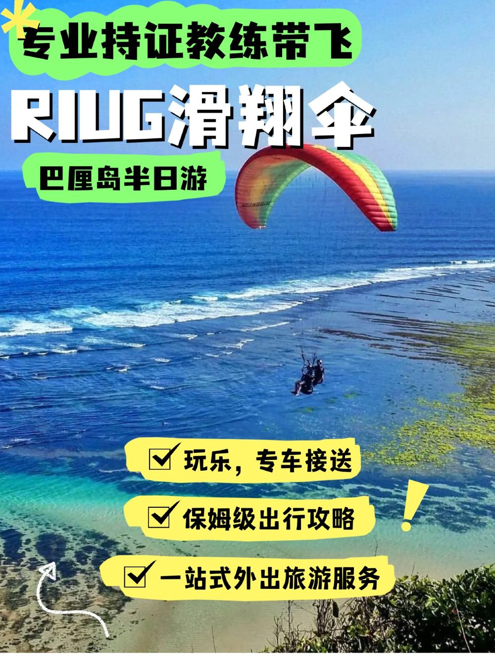 巴厘岛南部滑翔伞基地【资深教练保驾护航|全方位专业摄影记录】【[安全承诺]认证教练一对一指导,采用高品质欧洲滑翔伞设备,确保每一次飞行的安全性】