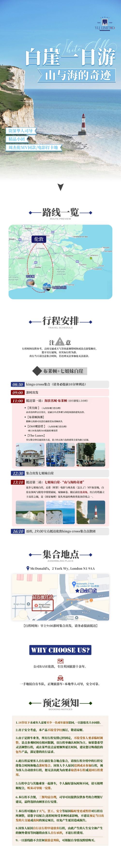 英国伦敦往返七姐妹白崖·布莱顿一日游【伦敦当地华人旅行社】【4-16人小团,4人成团保障。中文司导,奔驰8座或17座商务车型用车,沟通无忧,舒适出行!】
