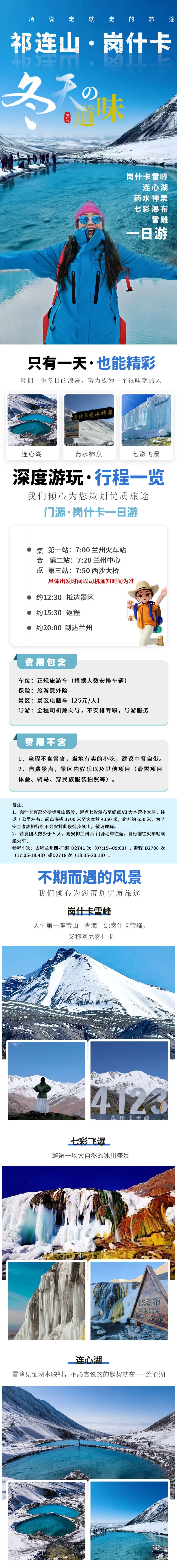 ▲ 1、岗什卡有部分徒步登山路段,起点七彩瀑布至终点 V3 大本营小木屋,往返 7 公里左右,起点海拔 3700 米至大本营 4350 米,爬升约 650 米,为了安全考虑旅行社不会安排此段徒步登山,敬请理解。 2、若发团人数少于 5 人,则安排兰州西-门源动车往返,自行前往火车站乘坐火车; 参考车次:去程兰州西-门源 D2741 次(07:15--09:03),返程 D2708 次(17:05-18:48)或D2718 次(18:35-20:18)。