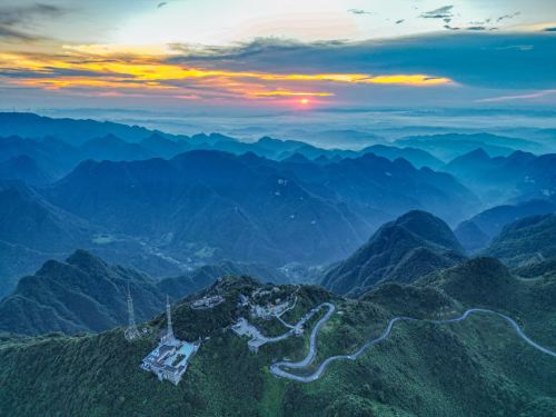 ▲ 娄山关景区红色与自然交融 娄山关位于遵义市汇川区与桐梓县交界处,是川黔交通要道上的险峻关隘,也是红军长征途中取得大捷的重要战场。景区内现存有战斗遗址、诗词碑刻及纪念设施,尤以《忆秦娥·娄山关》词意氛围浓厚。登高远眺,群峰叠嶂、云海翻涌,既可缅怀革命历史,又能领略黔北山地雄奇壮美的自然风光。