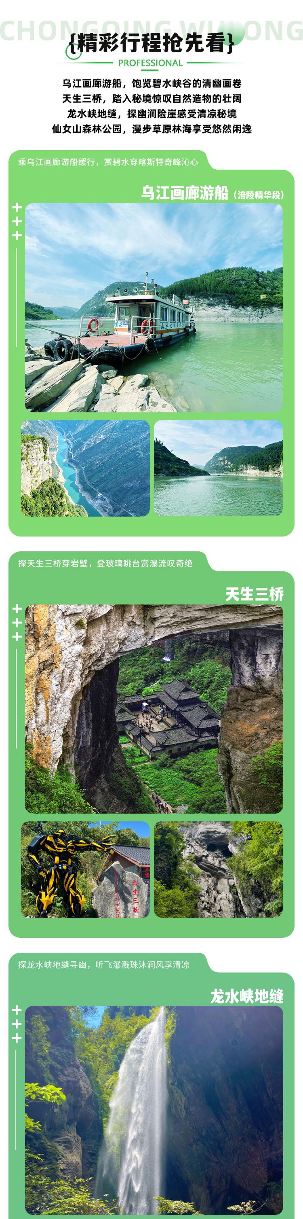 重庆天生三桥+龙水峡地缝或仙女山一日游【大巴团/赠午餐】【正规旅游大巴舒适出行,赠送特色午餐,专业导游带领舒心放心】