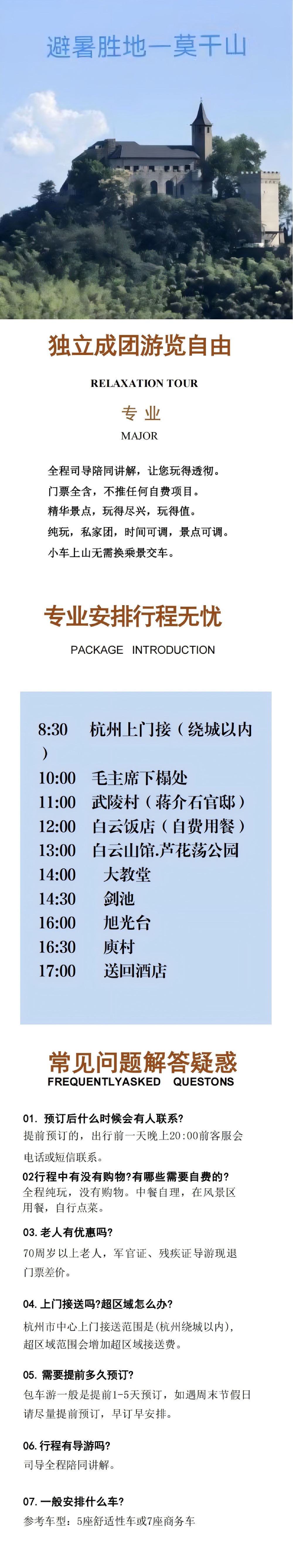 莫干山一日活动【私家小团+专车上山无需换乘+全程陪同讲解】【【舒适出行】莫干山景区内全程专车游玩,无需换乘园内交通,专车直达核心景点(接驳车辆为全系车型)】