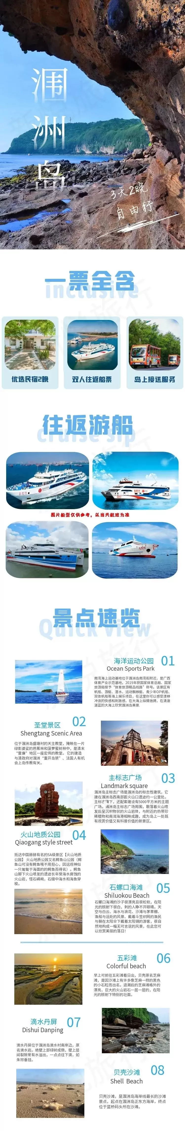 北海涠洲岛四日游【专车接送站+船票上岛票+住宿 玩转银滩老街+火山海岛一站式畅玩】
