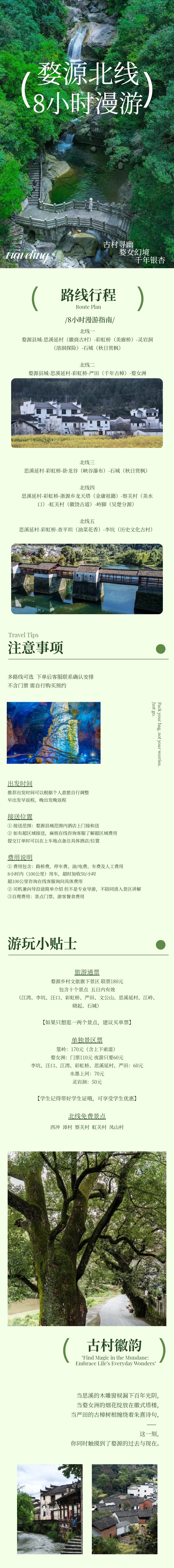 江西婺源北线包车8小时一天游/快速打卡思溪延村+婺女洲+严田【随心串联分散景点,避开团队人流,优享严田、灵岩洞等地的静谧美景】