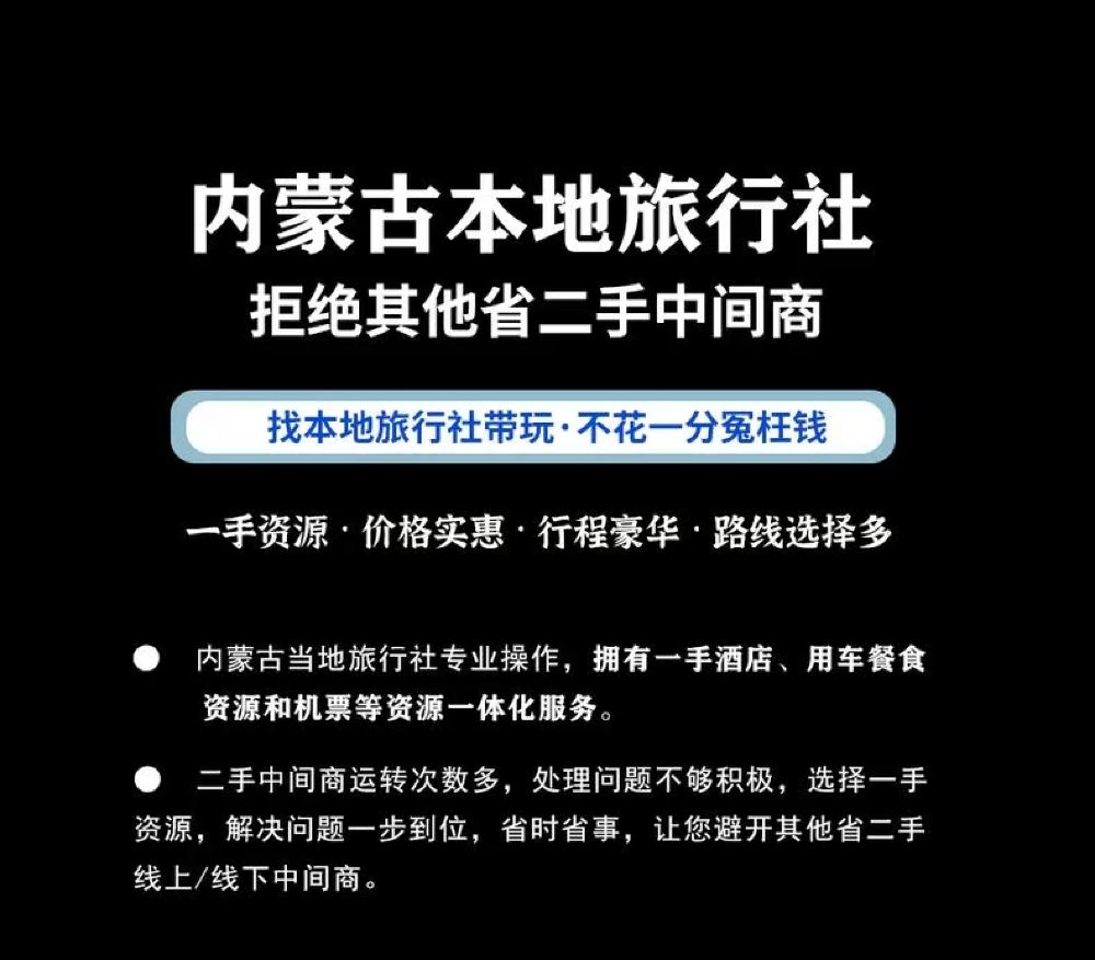 乌兰察布出发套餐:出发为乌兰察布,返程返回也是乌兰察布。