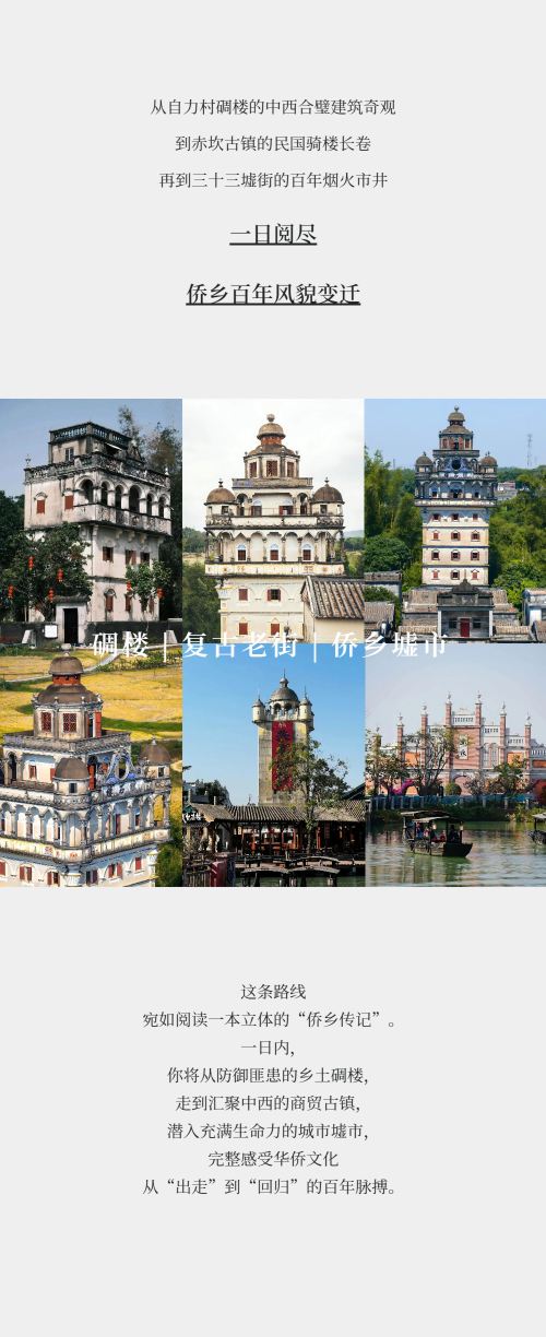 江门包车10小时一日游|打卡开平碉楼群+赤坎古镇+三十三墟街【专车串联剧中核心取景地,一站式沉浸打卡,体验戏里戏外的江门风情。】