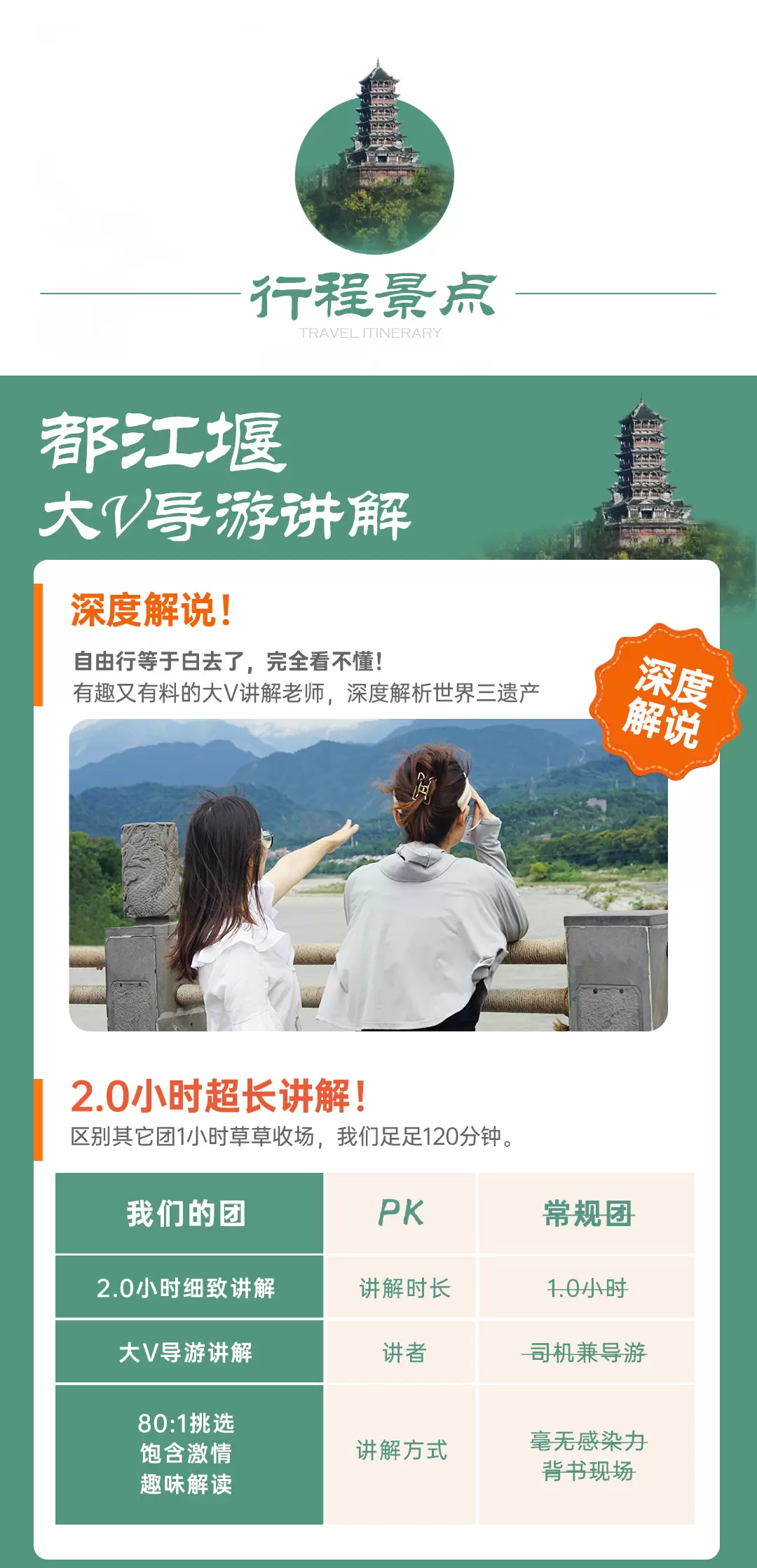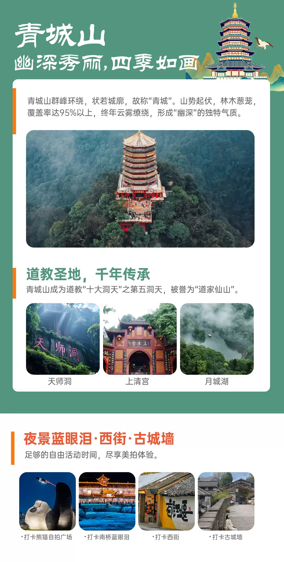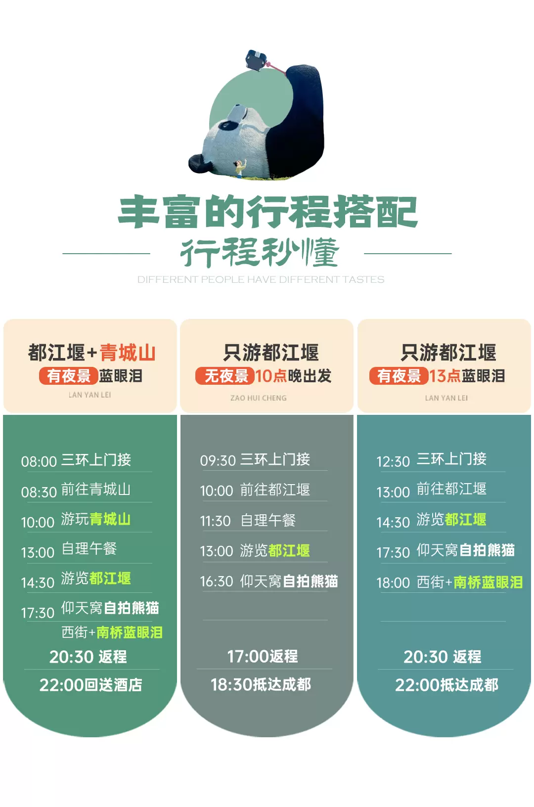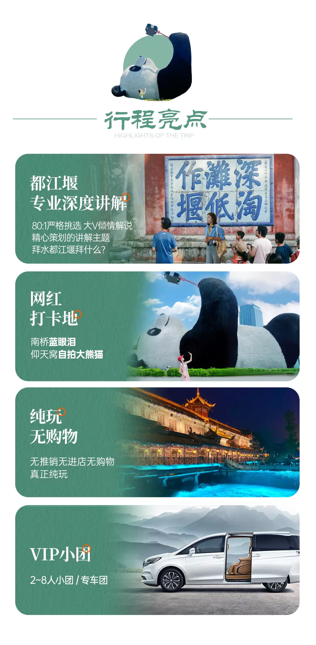 成都都江堰景区+青城山一日游【2-8 人VIP 小团◆蓝眼泪·网红自拍熊猫-可选|深度趣味讲解·三环上门接送】