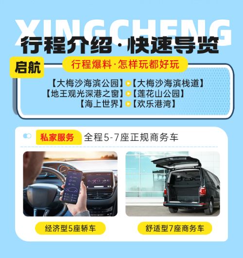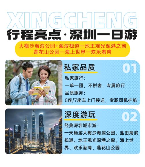 深圳大梅沙+地王观光+海上世界+莲花山一日活动|包车游上门接送【私家旅行:一单一团,不拼客,专属旅行; 品质服务:车上门接送,专职司机护航】