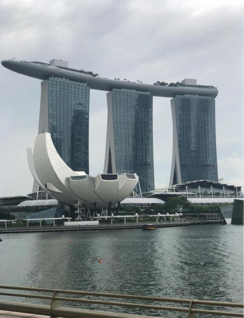 ▲ 滨海湾金沙酒店(Marina Bay Sands),是集室外泳池、观光平台、豪华娱乐城等设施于一体的大型综合度假酒店,位于新加坡滨海湾10 Bayfront Ave,是美国拉斯维加斯金沙集团耗资50多亿美元建造的,于2010年6月23日开业,被称为“诺亚方舟”。