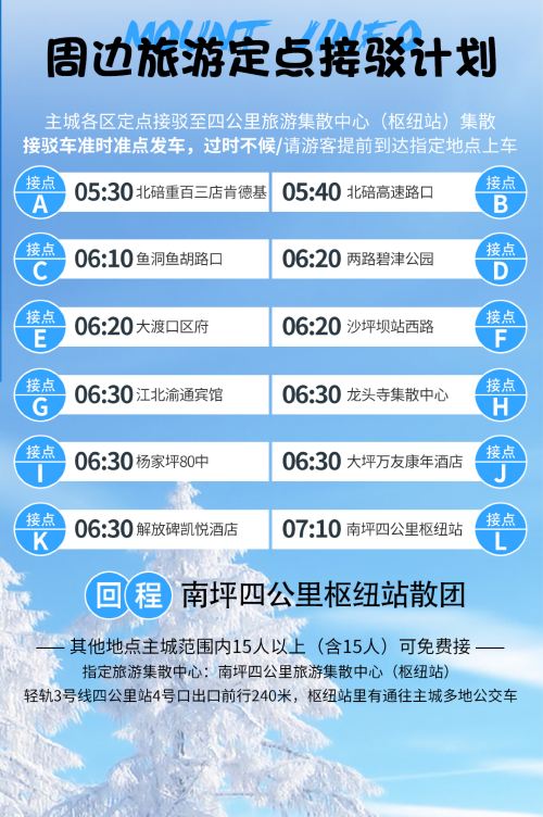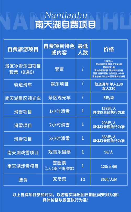 2、雪乃季节性自然产物,雪景好坏情况主要受天气原因影响,如未达到理想观赏时期,也将按正常班期发团,对此介意的游客请谨慎选择下单哦。建议下单前先咨询在线客服,如介意的请慎重下单!给您带来的不便敬请谅解,谢谢。