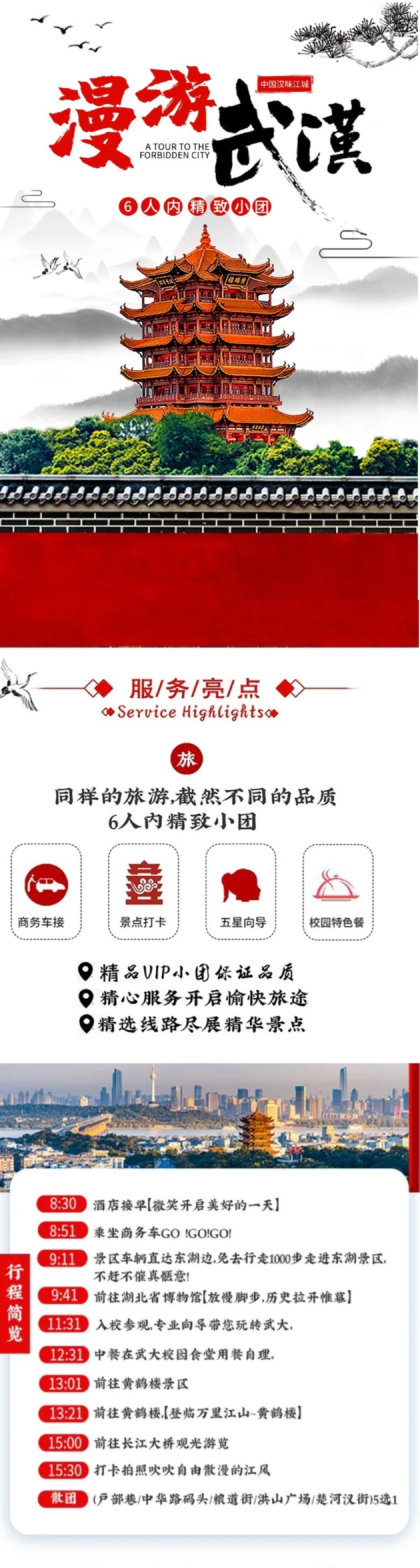 2-6人小团/黄鹤楼+湖北省博物馆+东湖+武汉大学一日游【【优质出行】2-6人精致小团/多人可定制出行】