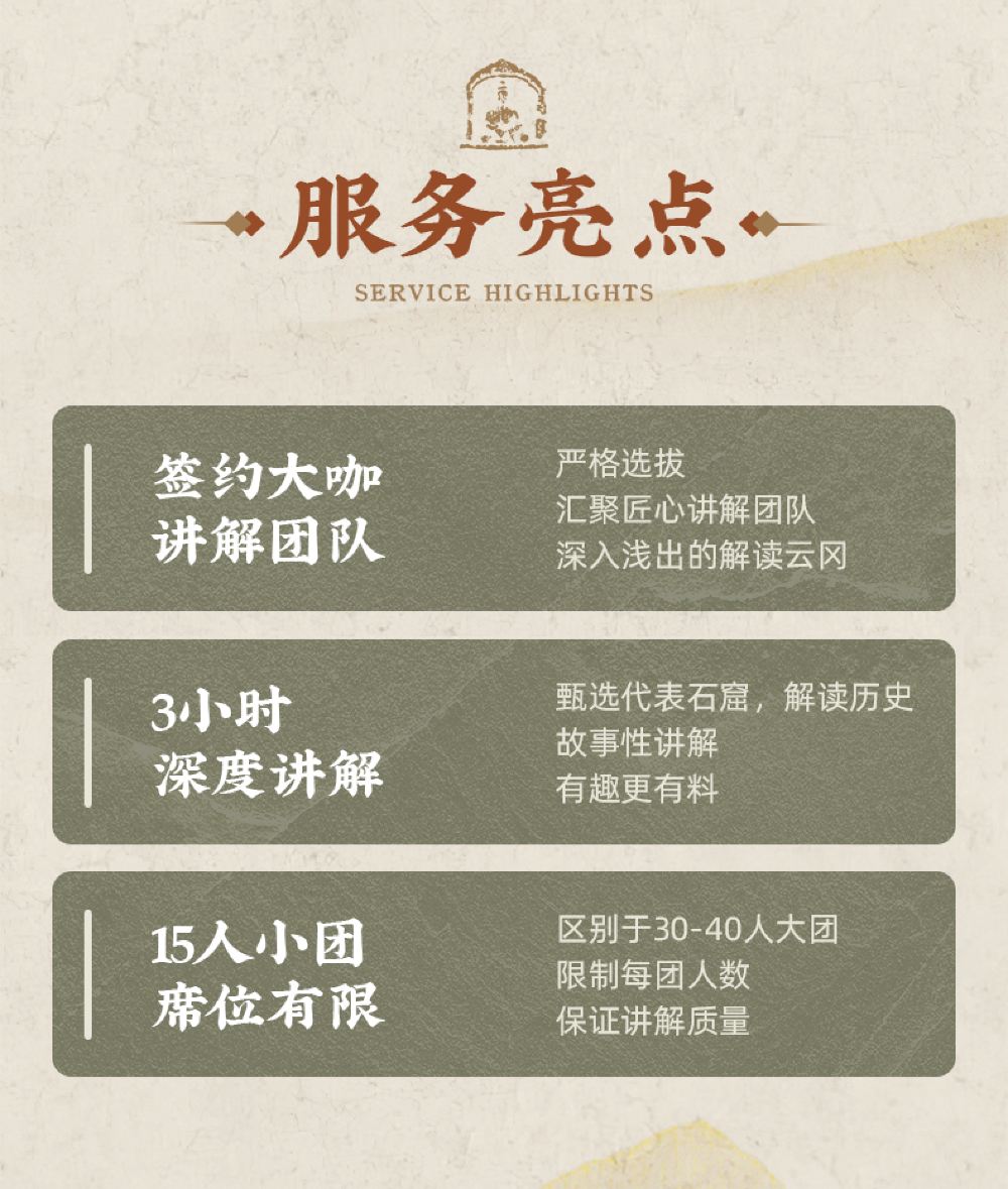 “大咖说”大同云冈石窟3小时人文精讲·15人小团【可含门票】【【15人小团】区别于20-40人大团,人少互动多,配备耳机,照顾每个人的视听感受。】