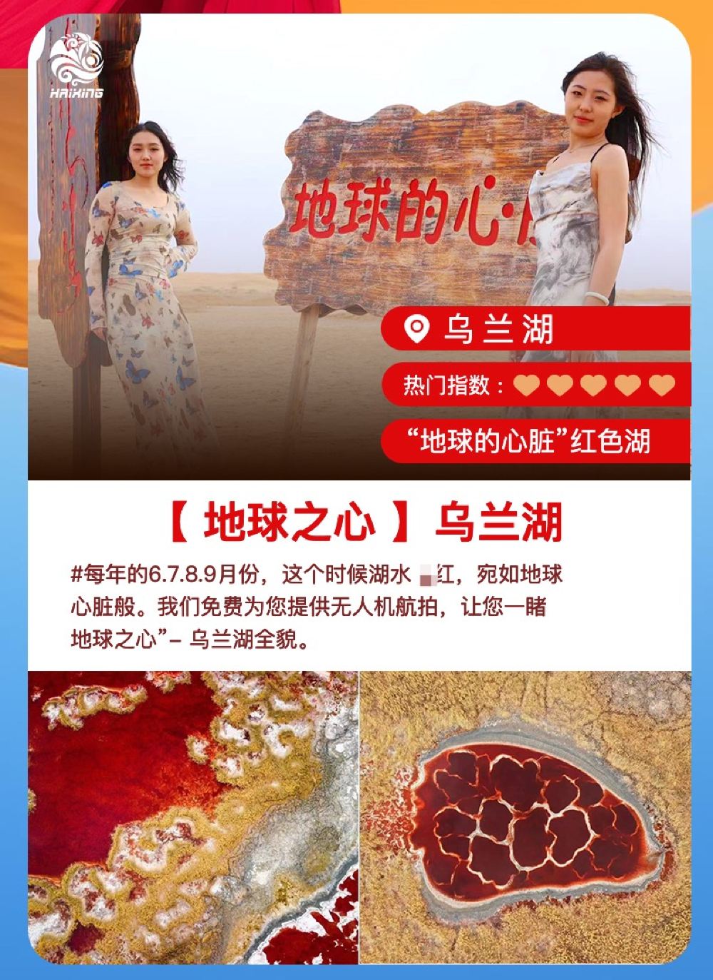 【六湖穿越】穿越地球之心乌兰湖 打卡龙眼湖赠航拍免费滑沙【【经典线路】大五湖路线附赠翡翠龙眼湖,保证大五湖不会偷工减料。打卡各具特色的六湖,分分钟刷爆朋友圈!】