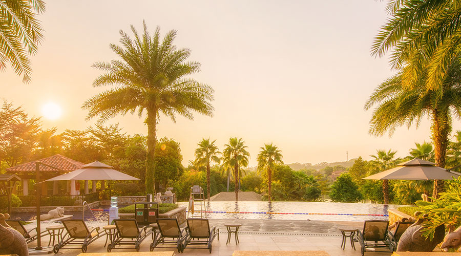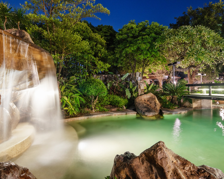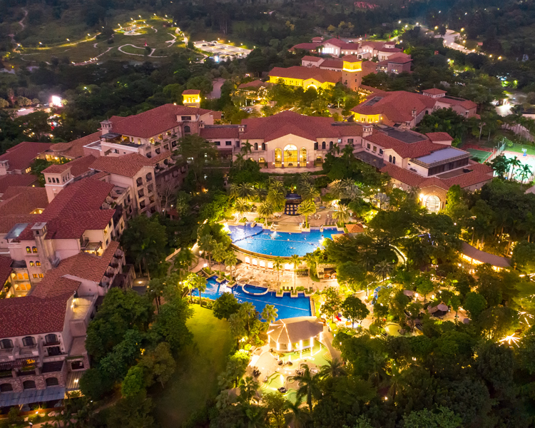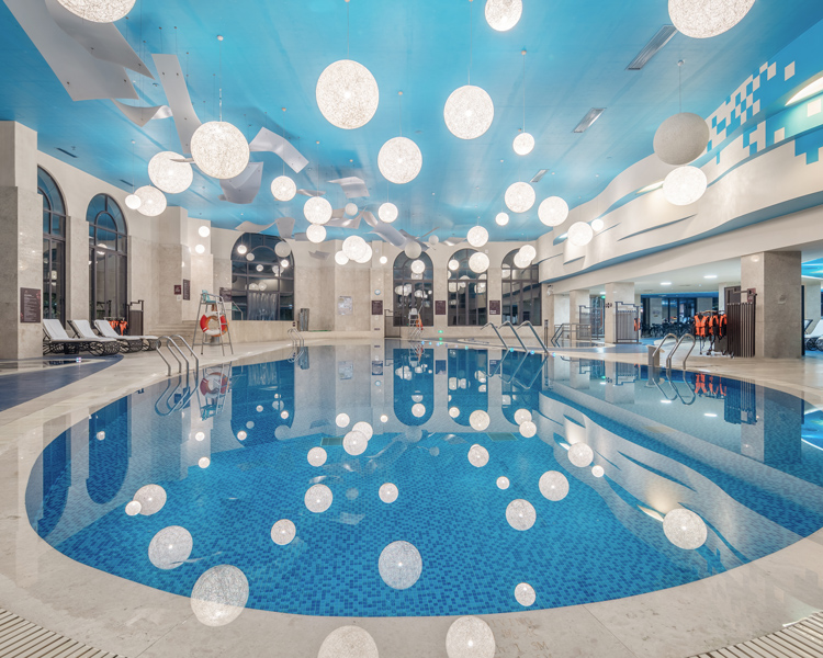 休闲观景区和草坪活动区等由动到静的六大主题部分,30余个原汤池和芳香SPA泡池、无边界泳池、景观池、儿童戏水池等,让您尽情体验美林水疗的乐趣。